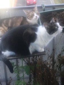 Sie ist nun noch weiter oben als im Wintergarten, den weiten Himmel über sich, bei den Sternen. Abends lief die kleine grau getigerte Hofkatze an der Frau vorbei, huschte hinein, noch mal hinaus, wieder rein ins Treppenhaus, blieb auf den Stufen sitzen und saß noch da, als die Frau noch einmal die Wohnungstür öffnete. Doch keine andere Katze erschien in der Tür. „Es ist keiner mehr da“, sagte die Frau leise zu der kleinen getigerten, die sie stumm ansah. Sie hatte Jade und Lina ein paar Mal gesehen, angefaucht und belauert. Die beiden Miezen schauten neugierig, ohne zu fauchen, zurück, beugten sich weit vor über die Schwelle. Sie konnte sie gerade so zurück halten. Die Kleine grau getigerte fauchte immer, selbst wenn man ihr Futter hinstellte und ließ sich kaum anfassen. Nur manchmal beim Füttern kurz streicheln. Schon riss sie den Kopf wieder herum, zeigte ihre scharfen Zähne und verdrehte leicht die Augen wie ein kleiner, dunkler Kobold. Sie zu sehen war dennoch ein Trost für die Frau. Es war so eine ungewohnte Stille und Leere jetzt in der Wohnung. Der Bus fuhr vor dem Küchenfenster vorbei. Noch häufiger als sonst, schien es ihr. Jedes Mal horchte sie auf, winkte dem Bus manchmal nach und stellte sich vor, sie und ihre beiden Miezen kämen wohlbehalten mit dem Bus vom Tierarzt zurück in ein neues, noch schöneres Leben.