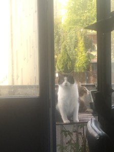 Bevor sie näher kam, flog die Amsel schon wieder fort über den verblühten Rosenbusch. Einen Moment später tauchte eine der Hofkatzen, die weiß-braun gefleckte, aus der Nachbarschaft auf und setzte sich, stumm und erwartungsvoll. Die Frau kannte sie schon länger und gab ihr eine Portion Futter gleich aus der Verpackung. Der Futternapf mit dem lustig aufgemalten Katzengesicht war seit ein paar Tagen verschwunden. Ein Aushang mit der Bitte ihn zurückzubringen, brachte nichts. Die Frau sah zu dem blauen, verglasten Anbau, der wie ein Türmchen aussah, hinauf zu ihrem Fenster. Dort oben im Wintergarten mit den großen Fenstern ringsum saß Jade, ihre grauweiß getigerte Katze besonders gern, an ihrem Lieblingsplatz im Blumenkasten, reckte und streckte sich und schaute hinunter auf das Grünmeer. Nun war ihr Platz leer. Sie würde die Wiese und die Bäume nie von draußen sehen.