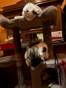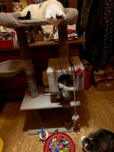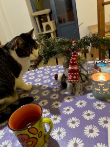 Weihnachtszauber: Meine drei Fellkobolde Flausch Kasimir, Lino & Minnie lieben Kerzenlicht, Tannengrün und schöne Dinge zum Spielen.