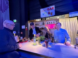 Farbenfrohe Kunst & neue Räume für Begegnung und Austausch im kleinen Ort Bärenstein im Osterzgebirge (im Foto von oben li. nach re.): Auf Besucher freuen sich Hartmut Dorschner, Jazzmusiker und Initiator des Musiksommer Bärenstein, Künstler Reinhard Zabka, die Sängerin Agnes Ponizil, die Malerin Anita Rempe, der Künstler Klaus Liebscher, der Maler und Bildhauer Mario Nitschke und die Künstlerin Dorora Zabka. Hier vor dem neuen Veranstaltungsraum „Musikladen“ in der Kirchgasse 2 am Markt.