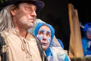 Bekannt ist das Boulevardtheater vor allem für seine Märcheninszenierungen, die bezaubernd, lustig, herzerfrischend und fantasievoll in neuem, zeitgemäßen Gewand erzählt und gespielt, kleine und große Zuschauer begeistern, von „Spuk unterm Riesenrad“, „Gebrüder Grimm – am Anfang aller Märchen“ bis zur Hexe Baba Jaga. Eben der typische Boulevardtheaterhumor, der fröhlich, feurig und mitreißend, märchenhaft und real zugleich und sehr musikalisch in aller Bandbreite am Jubiläumsabend zu erleben war. Da singt, tanzt und kocht die garstige alte Hexe Baba Jaga (Rainer König) eine Giftsuppe aus Fliegenpilz und regt sich mit reichlich Gruselkomik auf: „Diese Menschheit wird immer dümmer und dreister. Sie wollen den Wald vor meiner Hütte abholzen, eine Eisenbahn bauen und mich zur Touristenattraktion machen!“ Nicht einmal zaubern darf sie mehr, empört sich Baba Jaga. Als böse Königin aus dem Stück „Schneewittchen“ tanzt Katharina Eirich leidenschaftlich mit dem König, lässt sich danach in ihrem schwarzen Kleid auf einen Hocker fallen und stöhnt lustvoll, mit der Ketchup-Flasche den Takt schlagend in der berühmten Orgasmus-Szene aus „Harry und Sally“. Baba Jaga sieht es, verlangt genau dasselbe und geht beschwingt mit Sally hinaus.