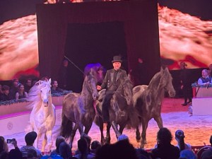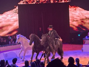 Beide Bilder haben auf den ersten Blick nichts gemeinsam. Die junge Frau im roten Kunstpelz, dem hochgezogenen Kragen gegen die Kälte, dem kunstvoll hochgesteckten, orangenen Haar, blasser Haut und smaragdgrünen Augen. Mit aufmerksamem, auch etwas herausforderndem Seitenblick schaut sie den Betrachter an. Die „Dame in Rot“ der Künstlerin Simone Haack, die in Berlin lebt und arbeitet, ist derzeit zu Gast in der Dauerausstellung der Städtischen Sammlungen Freital im Schloss Burgk und ein überraschender Blickfang für die Besucher. Das Bild der 45-jährigen Dix-Stipendiatin entstand 2023.